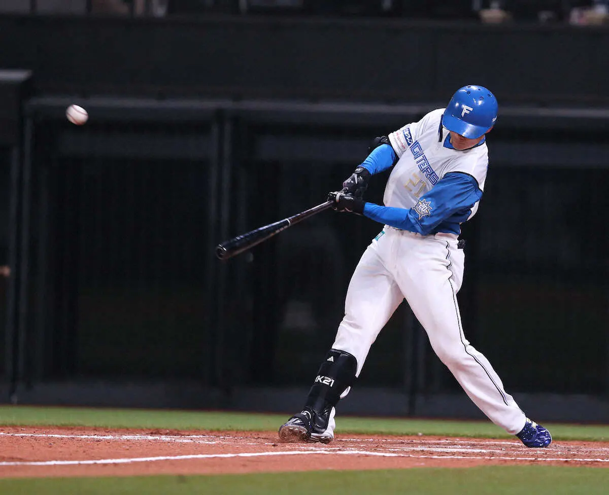 日本ハムの清宮がチームの新球場初安打となったフェンス直撃の二塁打を、新庄監督と同じように悔しがった。