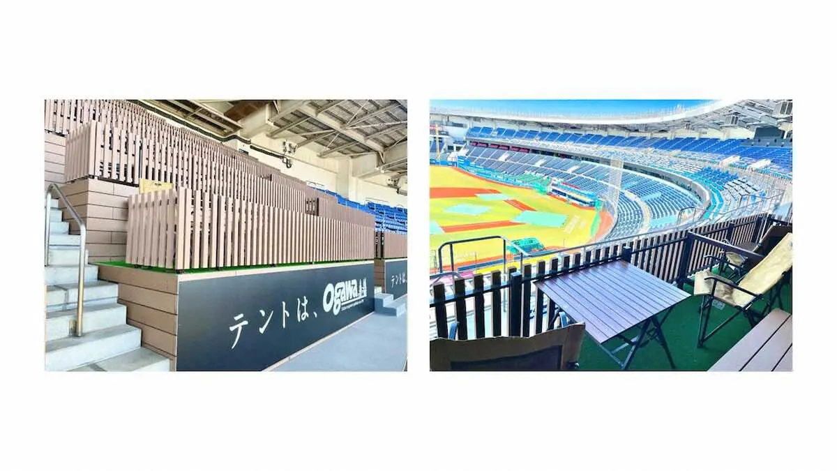 ロッテは31比、2023年シーズンから本拠地ZOZOマリンスタジアムのフロア4(2階席)3塁側にアウトドアをコンセプトにしたテーブル付きボックス席「ogawaキャンプBOX」(定員2~6人)が完成しましたと発表した。