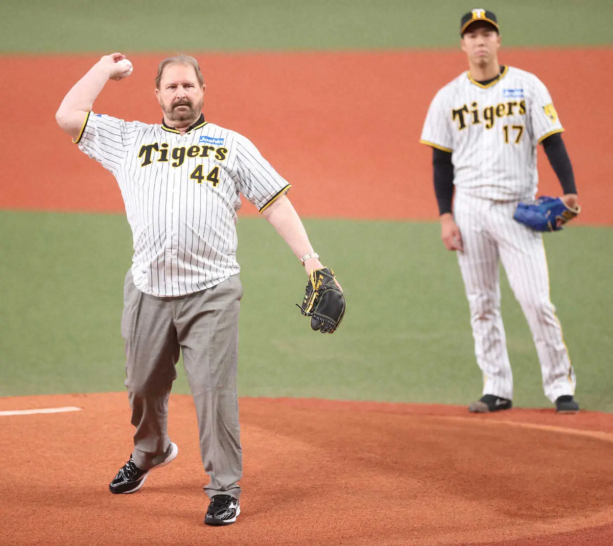 阪神 バース氏が始球式登場「やはりタイガースファンは世界一のファン」 虎党大興奮