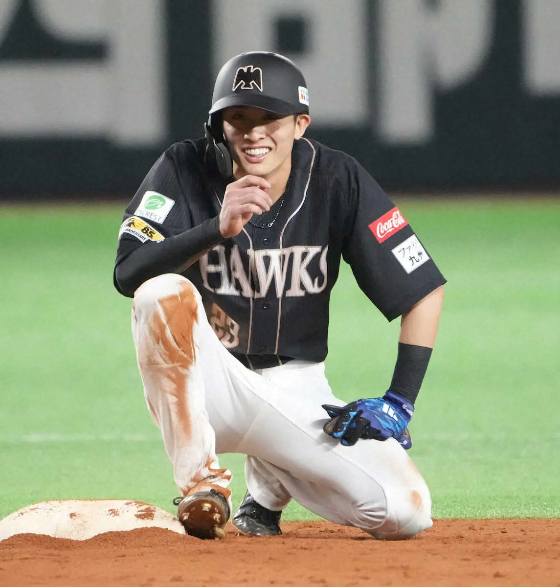 世界を震撼(しんかん)させた走力を満員御礼のペイペイドームで周東が見せつけた。