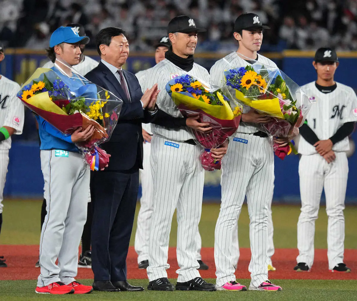 <ロ・日>始球式を行う森七菜(撮影・沢田 明徳) Photo by スポニチ 森七菜“爽”快始球式!侍ジャパンのWBC優勝祝い花束贈呈も ギャラリーで見る この記事のフォト 2023年04月05日の画像一覧 もっと見る 2023年04月05日の画像をもっと見る