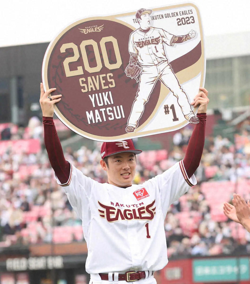 亡き友に贈る大記録だ。楽天松井裕樹投手(27)が5日、西武戦の1―0の9回を無失点で締め、史上最年少となる27歳5カ月で通算200セーブを達成。桐光学園時代の野球部同級生で、2年前に病気で他界した小国颯(はやと)さんがいる天国にも朗報を届けた。2大会連続出場となった3月のWBCでは貴重なリリーフ左腕として世界一も経験してさらに成長。守護神左腕が次に見据えるのは、13年以来10年ぶりのリーグ優勝だ。