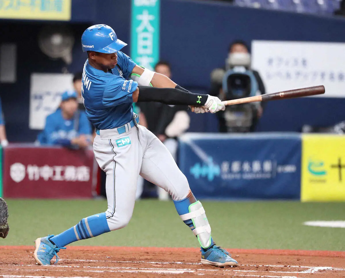 日本ハムの万波中正外野手(23)が今季初タイムリーで誕生日を自ら祝った。