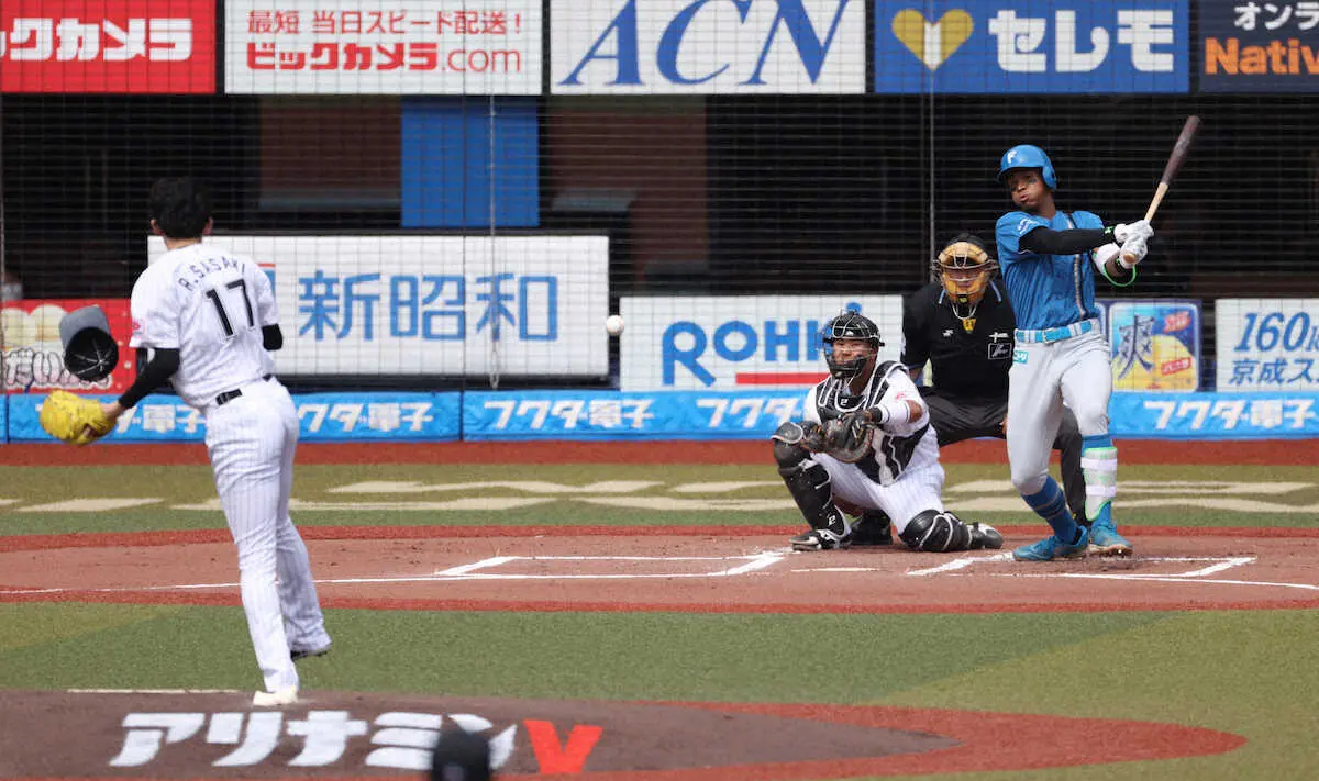 「2番・右翼」で3月30日の開幕・楽天戦(エスコン)以来のスタメン出場し、初回1死だ。昨季のチームが2度の対戦で計13イニング1得点だった右腕と対峙(たいじ)。5球目にはこの日最速164キロをファウルにするなど、8球粘った末に161キロ直球を中前にはじき返した。