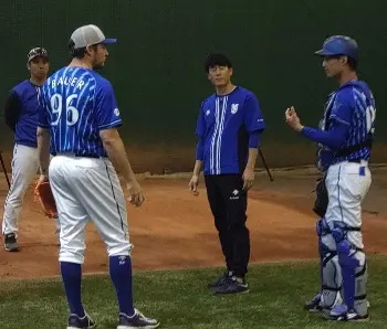 エ軍の33万円兜は約4・5キロ レンフロー「重いね」3発で出番が多発しレンヒーフォ「部品が外れた」