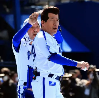 DeNA“恒例”ダチョウ倶楽部の試合前セレモニー開催。入江&高城がチュー!