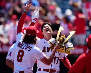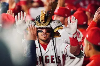 <エンゼルス・ブルージェイズ>5回、逆転3ランを放ち鍬形が外れた兜をかぶるトラウト(撮影・会津 智海) Photo by スポニチ 兜2号はレンヒーフォ!ウッキウキでかぶり鍬形外れる→トラウト逆転3ラン“… ギャラリーで見る この記事のフォト 2023年04月09日の画像一覧 もっと見る 2023年04月09日の画像をもっと見る