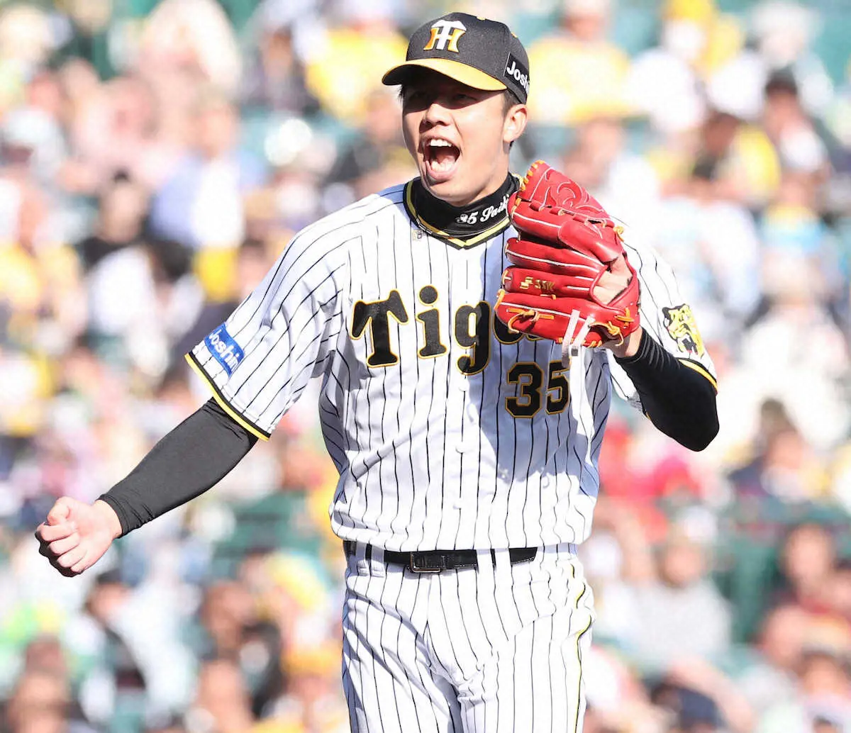 3回先頭の長岡に対しては「真っすぐは張ってきている。そこでタイミングを変えたりもした」と無走者の場面で初めてクイック投法を使い、直球で空振り三振に仕留めた。中軸3人には計9打席で1安打で圧倒。特に3月19日のオープン戦で甘くなった内角直球を左越え被弾したオスナには、あえて内角球を見せ球として投げ分け「梅野さんがうまく配球してくれた」と感謝した。