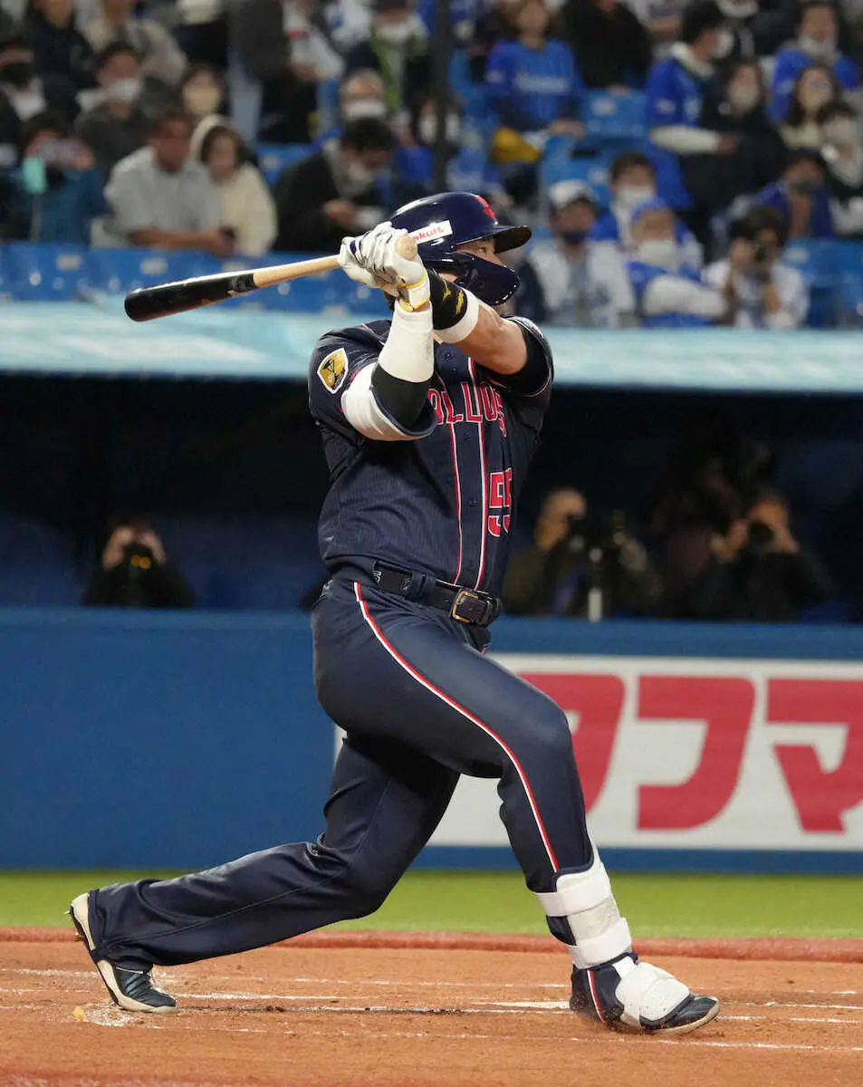<ヤ・D>初回、村上は先制2ランを放つ(撮影・沢田 明徳) Photo by スポニチ ヤクルト・村上 目覚めた!今季2号 開幕戦以来37打席ぶり一発の先制2ラン ギャラリーで見る この記事のフォト 2023年04月11日の画像一覧 もっと見る 2023年04月11日の画像をもっと見る