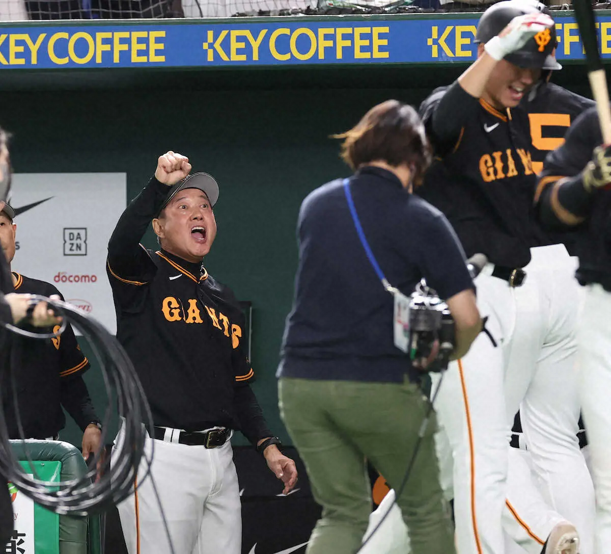 <巨・神(2)> 8回1無死、岡本の同点ソロに笑顔で喜ぶ原監督と坂本(撮影・大森 寛明) Photo by スポニチ 巨人・岡本和真 待望の今季初アーチ&初打点 今季11試合44打席目 後輩… ギャラリーで見る この記事のフォト 2023年04月12日の画像一覧 もっと見る 2023年04月12日の画像をもっと見る