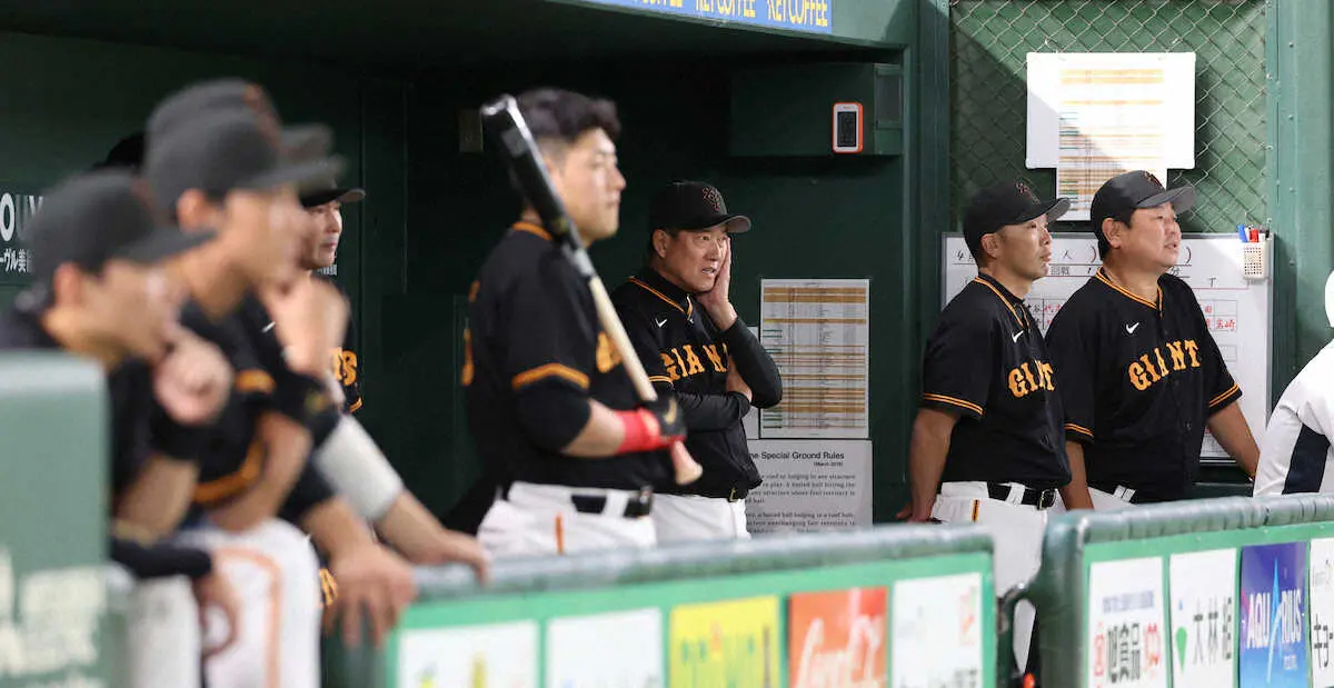 <巨・神>7回、静まりかえる原監督(中央)ら巨人ナイン (撮影・西川祐介) Photo by スポニチ 巨人ついに…最下位・中日とゲーム差なし 拙攻の嵐、12安打放つも1得点の… ギャラリーで見る この記事のフォト 2023年04月13日の画像一覧 もっと見る 2023年04月13日の画像をもっと見る
