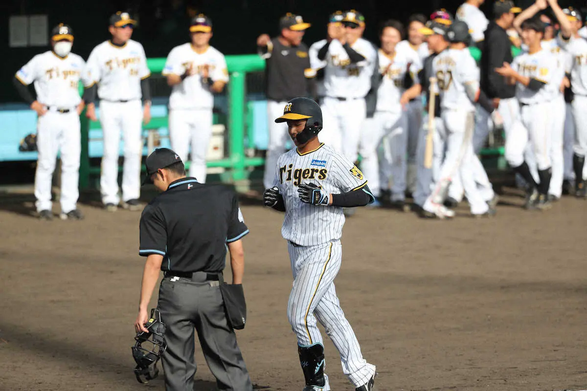 阪神のドラフト5位の戸井零士内野手がウエスタン・リーグ、中日戦でプロ初本塁打&初サヨナラ弾の離れ業をやってのけた。「9番・DH」でスタメン出場すると、1点差の9回2死一塁から松山の146キロを振り抜き、左翼へのサヨナラ2ラン。チームメートの手荒い祝福に「人生初のサヨナラ本塁打です」と表情を崩した。