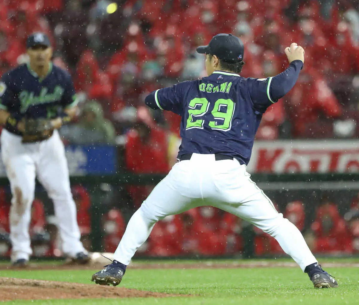 雨がふりしきる中での快投だ。小川は広島打線を寄せ付けず、5回1死で西川に安打を浴びるまで1人の走者も許さなかった。しかし迎えた6回。1死一塁から菊池の投ゴロを二塁へ悪送球。自らピンチを拡大し、その後二、三塁から野間に右前に運ばれ先制点を許した。