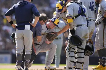 8回、パドレス・マチャドの打球をあごに受けたブルワーズのバーランド(AP) Photo by AP パドレス・マチャドの打球がブルワーズ新人投手を直撃 時速169キロのライ… ギャラリーで見る この記事のフォト 2023年04月16日の画像一覧 もっと見る 2023年04月16日の画像をもっと見る