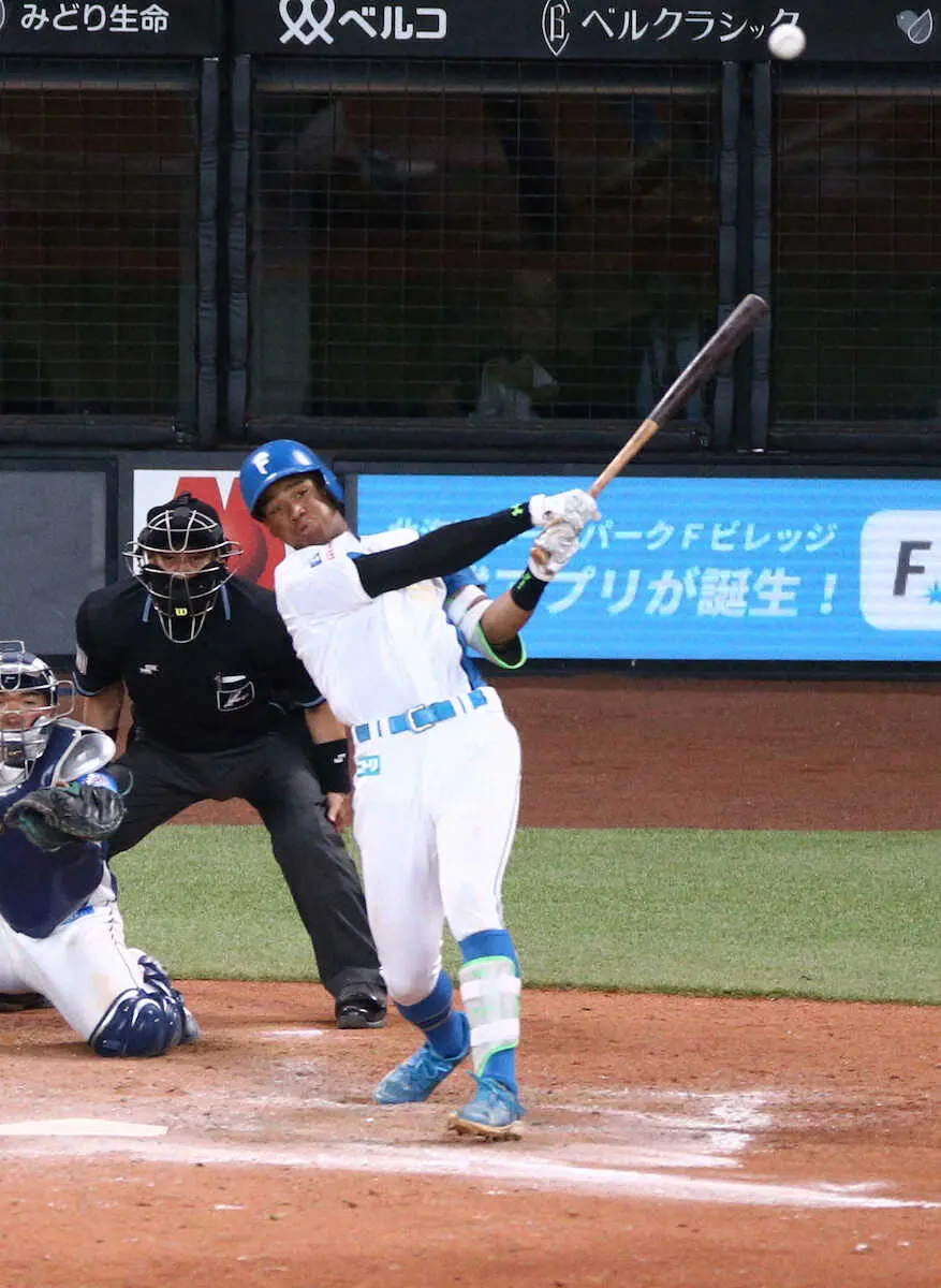 2点を追う7回1死一、二塁では、森脇の初球を打ちにいったが一邪飛。「前の打席で(好機で)打てなかった憤りが凄くあった」と万波。意地を見せつけた一発だった。