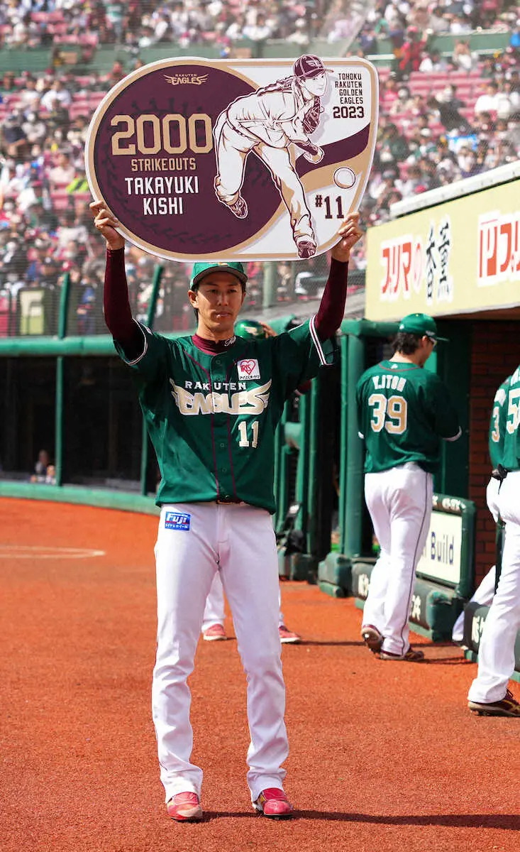 ▽岸(楽天)通算2000奪三振 16日のソフトバンク2回戦(楽天モバイルパーク)の3回に上林から見逃し三振を奪い達成。プロ野球23人目。初奪三振は西武時代の07年3月30日の日本ハム戦で木元から。