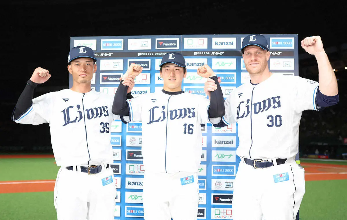 <西・ソ>お立ち台でポーズを決める(左から)若林、隅田、マキノン (撮影・白鳥 佳樹)