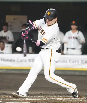 <巨・D>2回、中前打を放つ丸(撮影・岡田 丈靖)