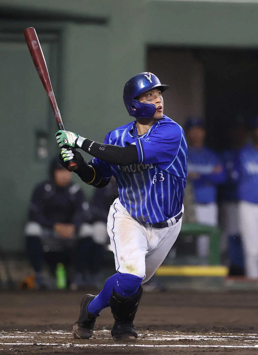 まずは右翼の守備で魅せる。初回2死無走者からの中田の右翼ファウルゾーンへ切れていく打球に対し、ダイビングキャッチ(記録は右邪飛)でチームを鼓舞すると、2回先頭の牧の右中間二塁打から1死三塁の好機で第1打席を迎え、巨人先発の山崎伊の初球、内角直球を振りぬいた打球は詰まりながらも右前へ。貴重な先制適時打となった。