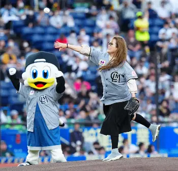 “肉背番”でギャル曽根が初始球式「凄く遠くて全然届かなくてびっくり…皆さん凄いなと感動しました!」