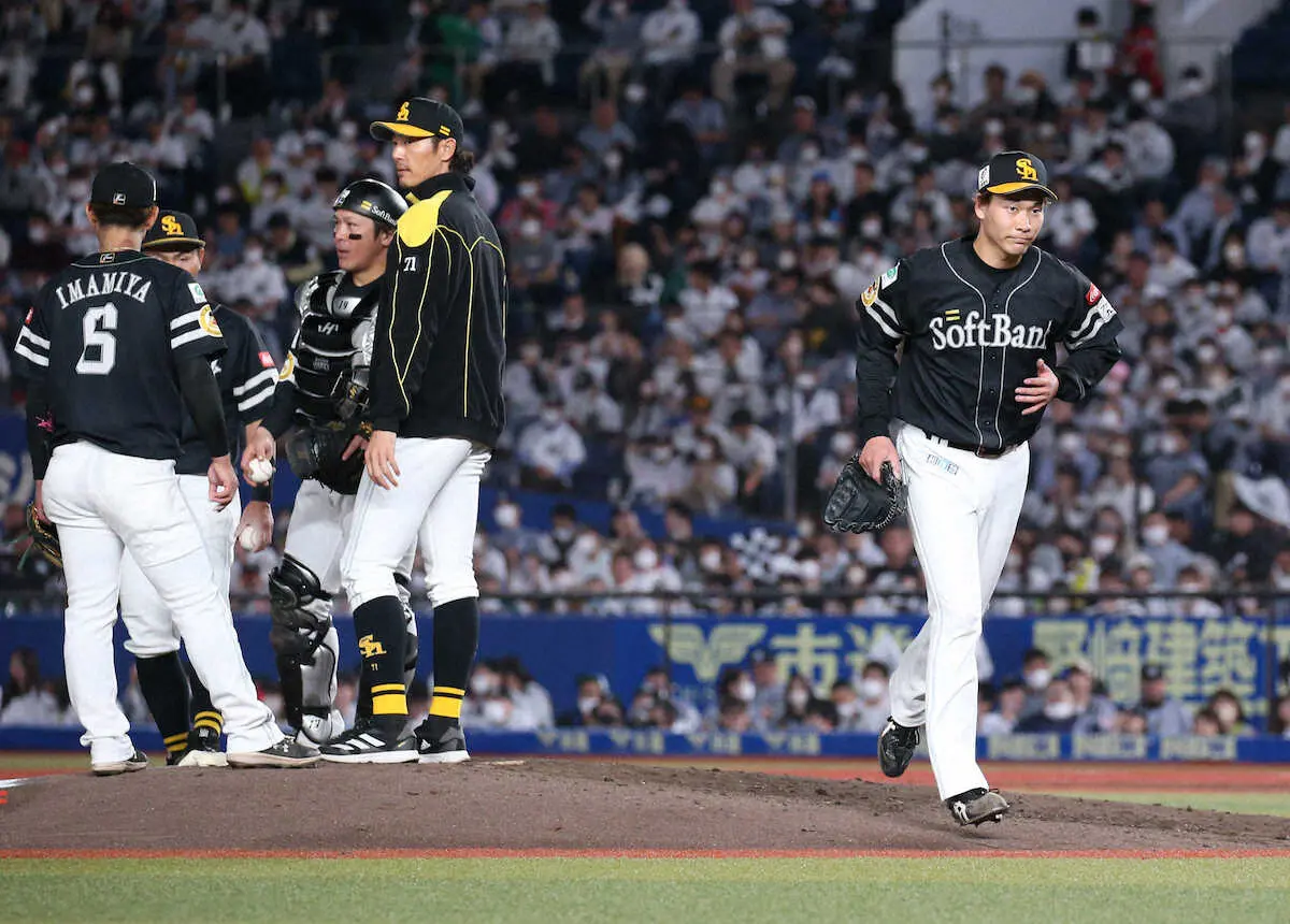 佐々木朗と投げ合った、今季初先発のソフトバンク・武田は4回1/3を6安打3失点で降板。1敗目を喫し「ふがいない投球をしてしまった」とうなだれた。