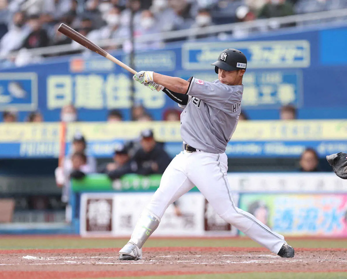 9番で出場し、両チーム無得点で迎えた5回だ。1死満塁で、開幕から2試合12回2/3を連続無失点だった藤井のフォークを引っ張った。先制の右前適時打。「先に点が入って良かった。僕自身もヒットが出て良かった」と一塁ベースで笑った。
