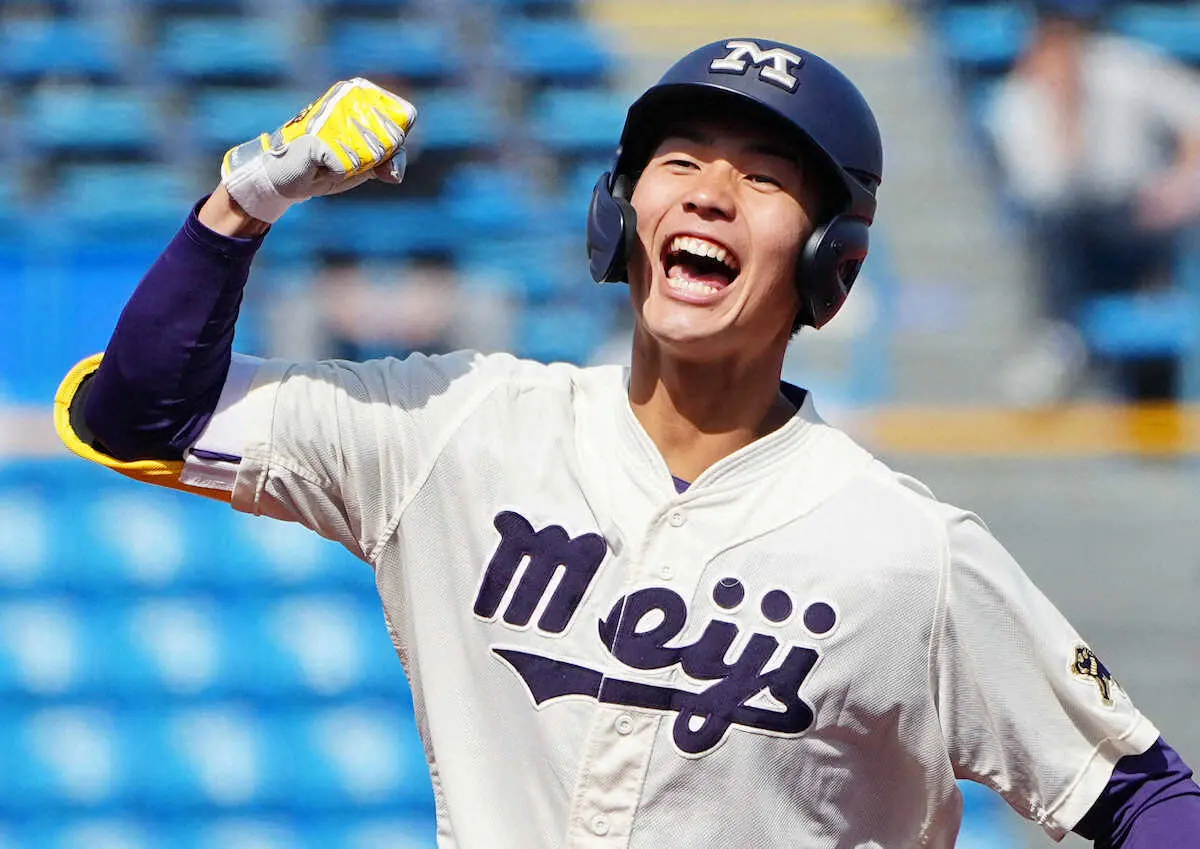 代打のみの通算3打席目で放ったリーグ戦初安打が、勝ち越しの決勝2ランとなった。広陵(広島)では高校日本代表の4番を務めるなど高校通算34本塁打。田中武宏監督は「そのうちスタメンで」と頼もしそうに見つめた。