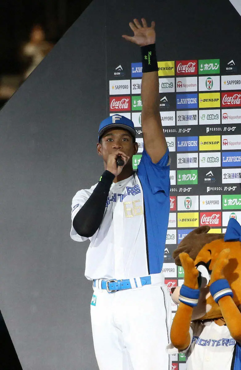 今季初の4番を任されて「ドキドキ」していたという万波。その中で2―0の3回1死一、二塁でレフトへの適時二塁打で2点追加した。「皆さんがつないでくれたチャンスで、マルティネスが先制弾を打ってくれたので気楽にいけました」と振り返った。