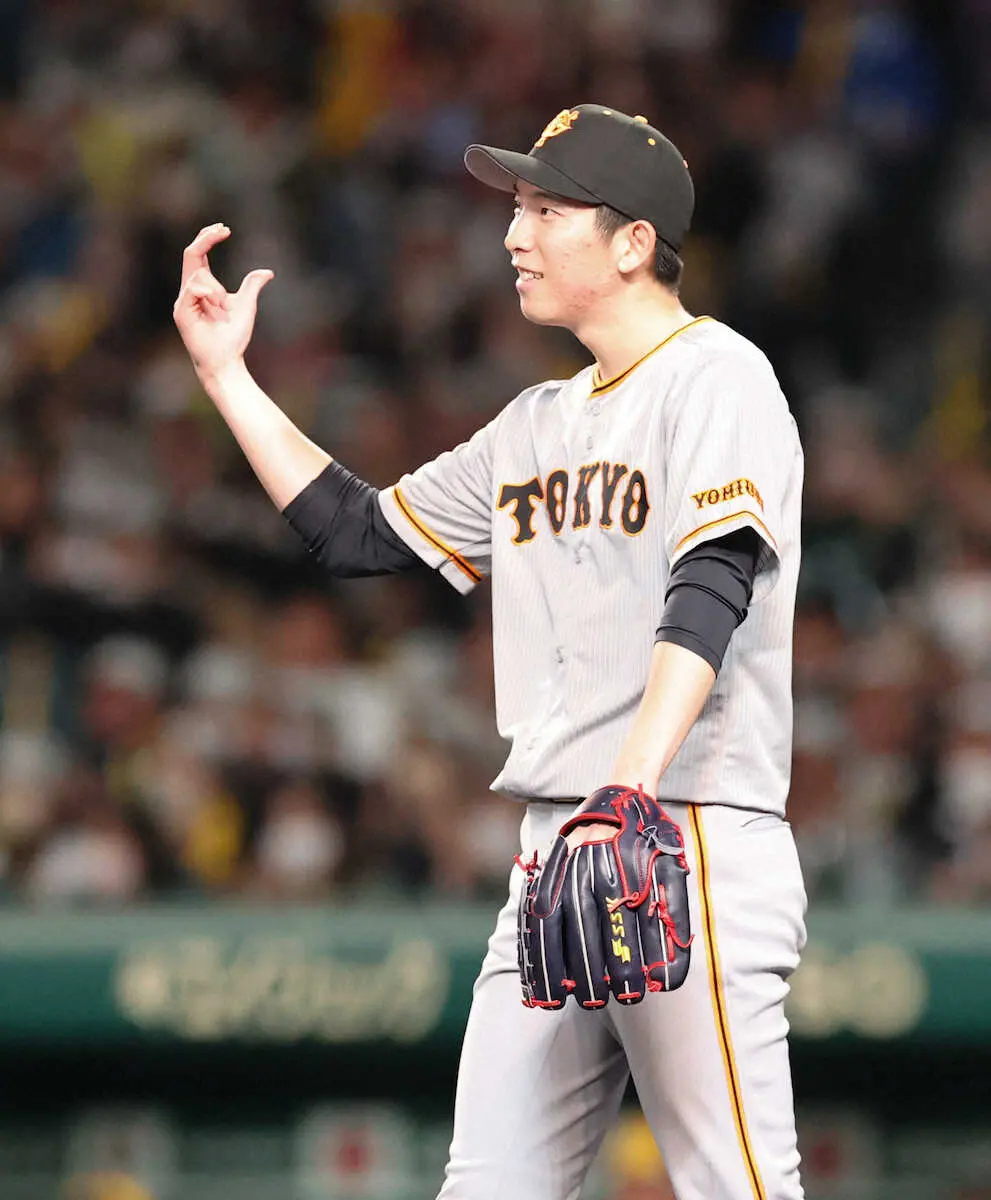 それでも6回は1四球を出しながらも無失点。だが、5―4のまま迎えた7回だった。先頭・木浪の左中間への鋭い打球を中堅・ブリンソンがダイビング好捕。続く代打・井上にこの試合4個目となる四球を与えると、ここで原辰徳監督(64)が自らマウンドまで出向き投手交代を告げた。なお、2番手として登板した左腕・大江が近本への死球で1死一、二塁としながらも梅野を空振り三振に仕留めたあと、中野の一ゴロを中田翔が好捕して無失点でしのいでいる。