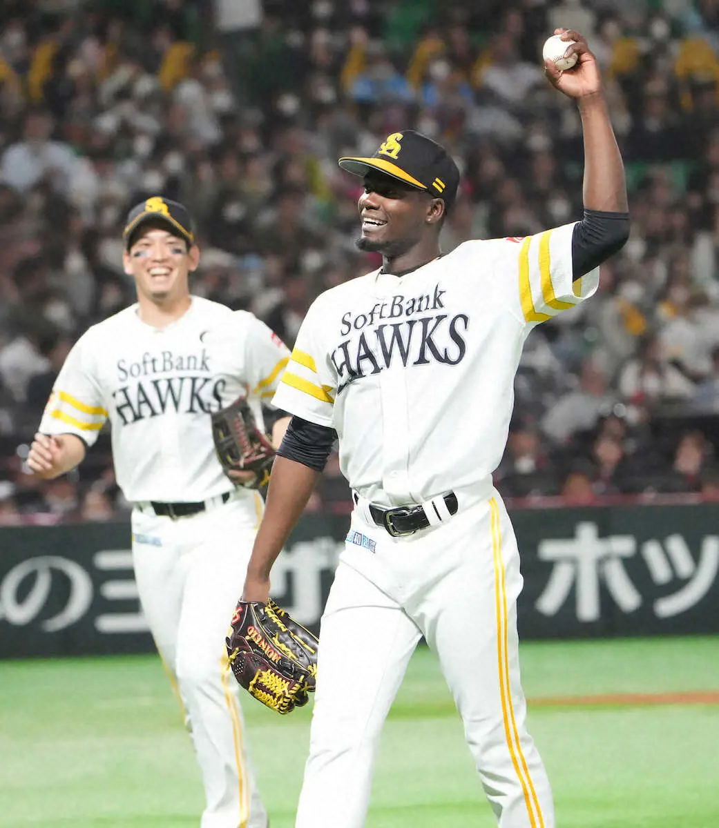 ソフトバンクのモイネロ投手(27)が26日の楽天戦にリリーフ登板。股を抜けそうな打球をスーパーキャッチでファンを驚かせた。