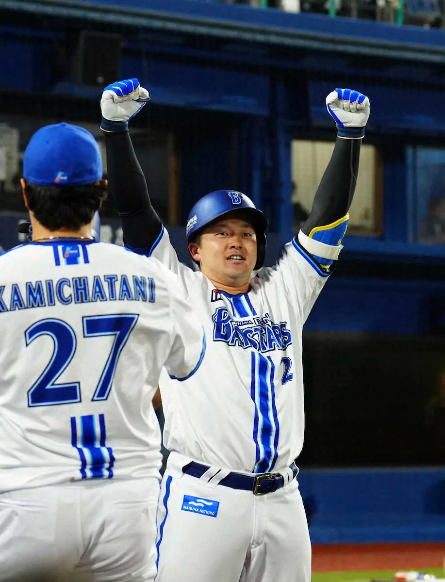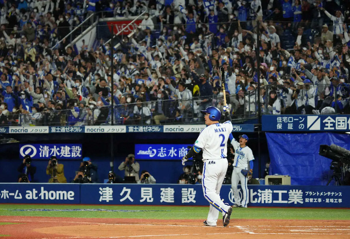 <D・ヤ>6回、3ランを放ち、デスターシャを決める牧(撮影・島崎忠彦) Photo by スポニチ DeNA・牧 ハマスタ沸かせた!!!逆転3ラン 4点差大逆転に歓喜のデスターシャ ギャラリーで見る この記事のフォト 2023年04月27日の画像一覧 もっと見る 2023年04月27日の画像をもっと見る
