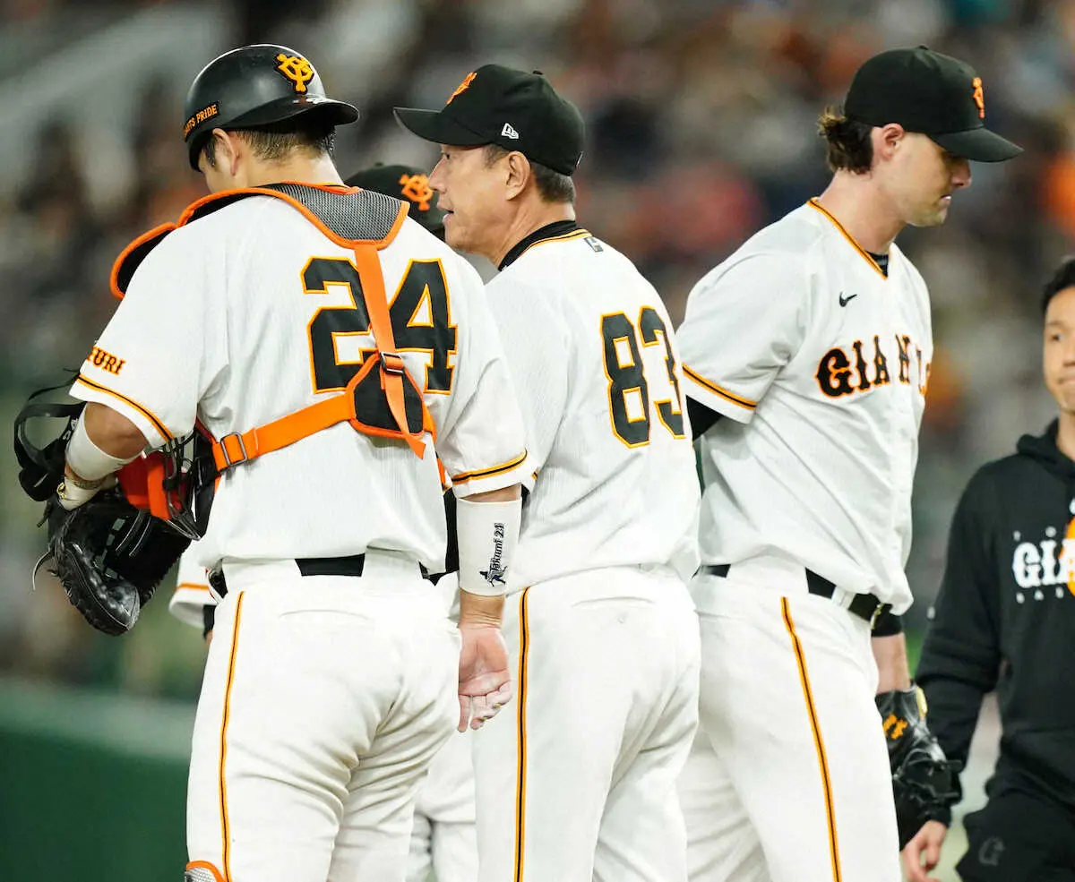 <巨・広>6回、代木の交代を告げた原監督(中央)はマウンドで仁王立ち(撮影・村上 大輔) Photo by スポニチ 巨人 勝てば3位浮上のはずが4発被弾11失点大敗 開幕投手ビーディいまだ… ギャラリーで見る この記事のフォト 2023年04月30日の画像一覧 もっと見る 2023年04月30日の画像をもっと見る