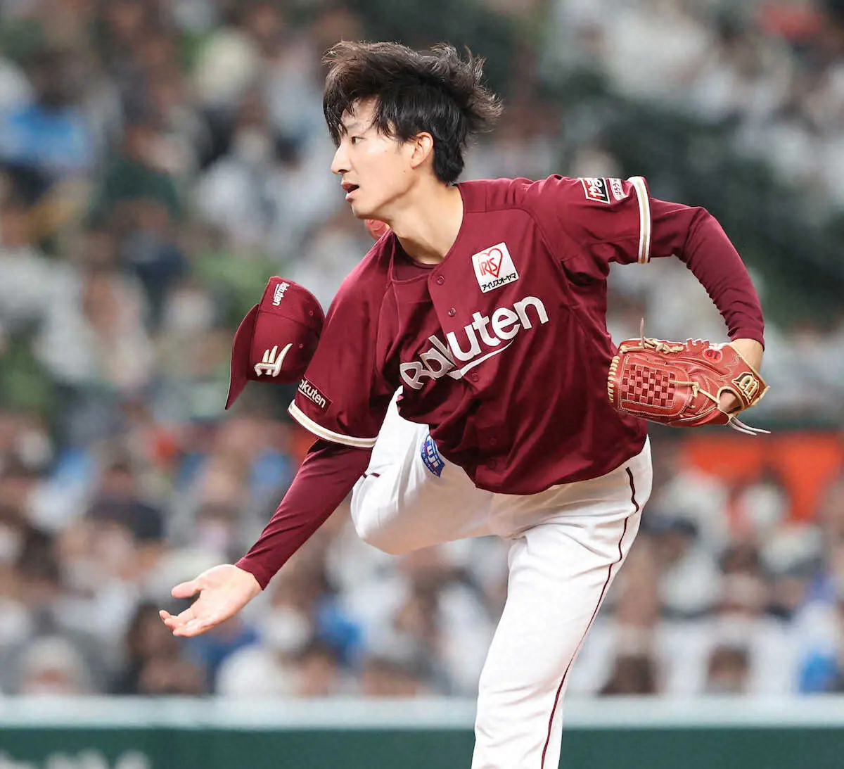 初回の自軍の攻撃中にベンチ前でキャッチボールを始めた際に“暴投”し試合を止めてしまう“初々しい”アクシデントも、初回を無失点に抑え安どの表情を見せた荘司。4点の先制点をもらった直後に、相手4番・中村に3戦連発となる7号ソロを浴びるなど2点を失ったが、必死に腕を振った。安打は打たれるものの、大きく縦に割れるカーブを軸に要所で三振を奪う力投。5回までに107球を投げ、ベンチで大粒の汗を拭った。6回から安楽がマウンドに上がった。
