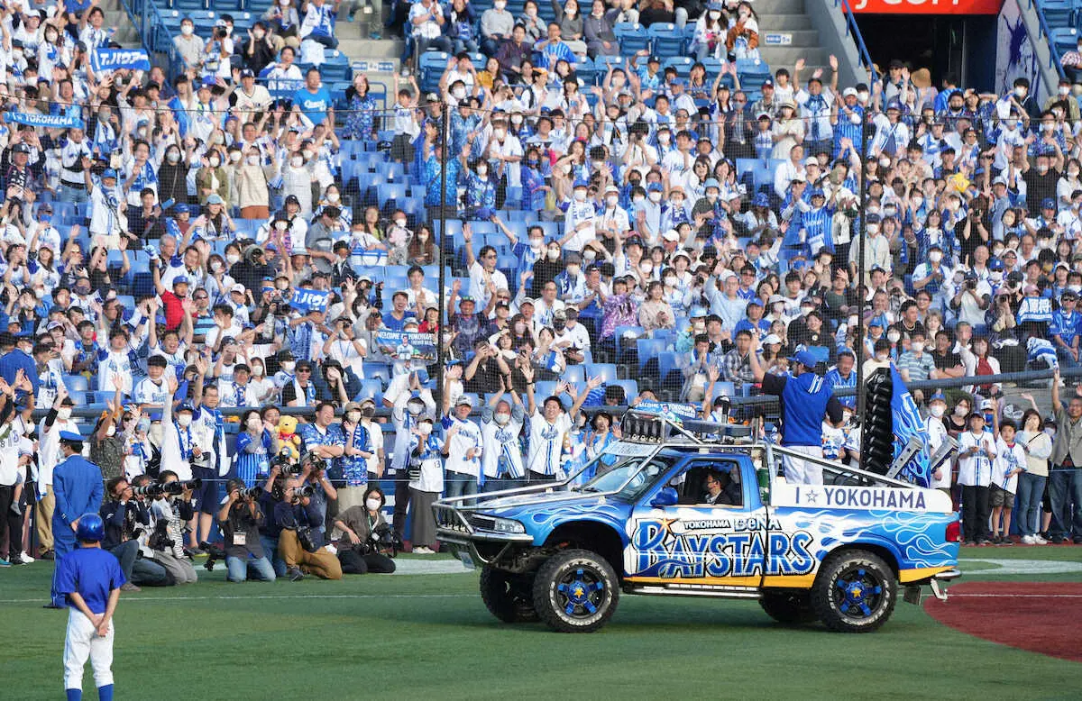 <D・広>横浜しか勝たん!ファンとハイタッチするバウアー(撮影・島崎 忠彦)