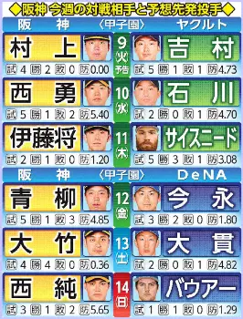 【今週の虎マッチアップ】開幕から25イニング連続無失点の村上が先陣、日曜日はバウアー登板?
