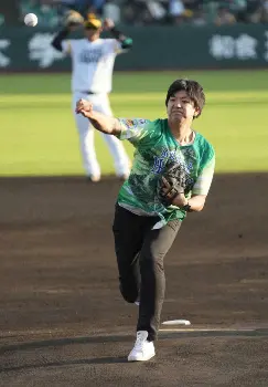熊本県出身のお笑いコンビ「からし蓮根」の2人が藤崎台球場で国歌独唱、始球式とフル稼働