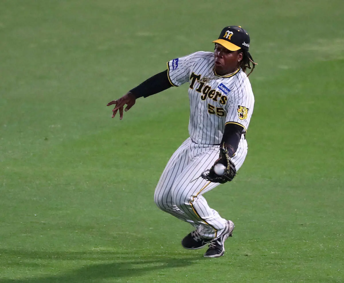 0―0で迎えた5回。先頭オスナの右翼手前への飛球に猛チャージすると、地面すれすれの打球に足から滑り込んで好捕した。気迫のランニングキャッチを見せた5日の広島戦に続く2試合連続の好プレー。120キロの巨体を揺らしたドミニカンのハッスルぶりに、ベンチの岡田監督も拍手を送った。