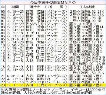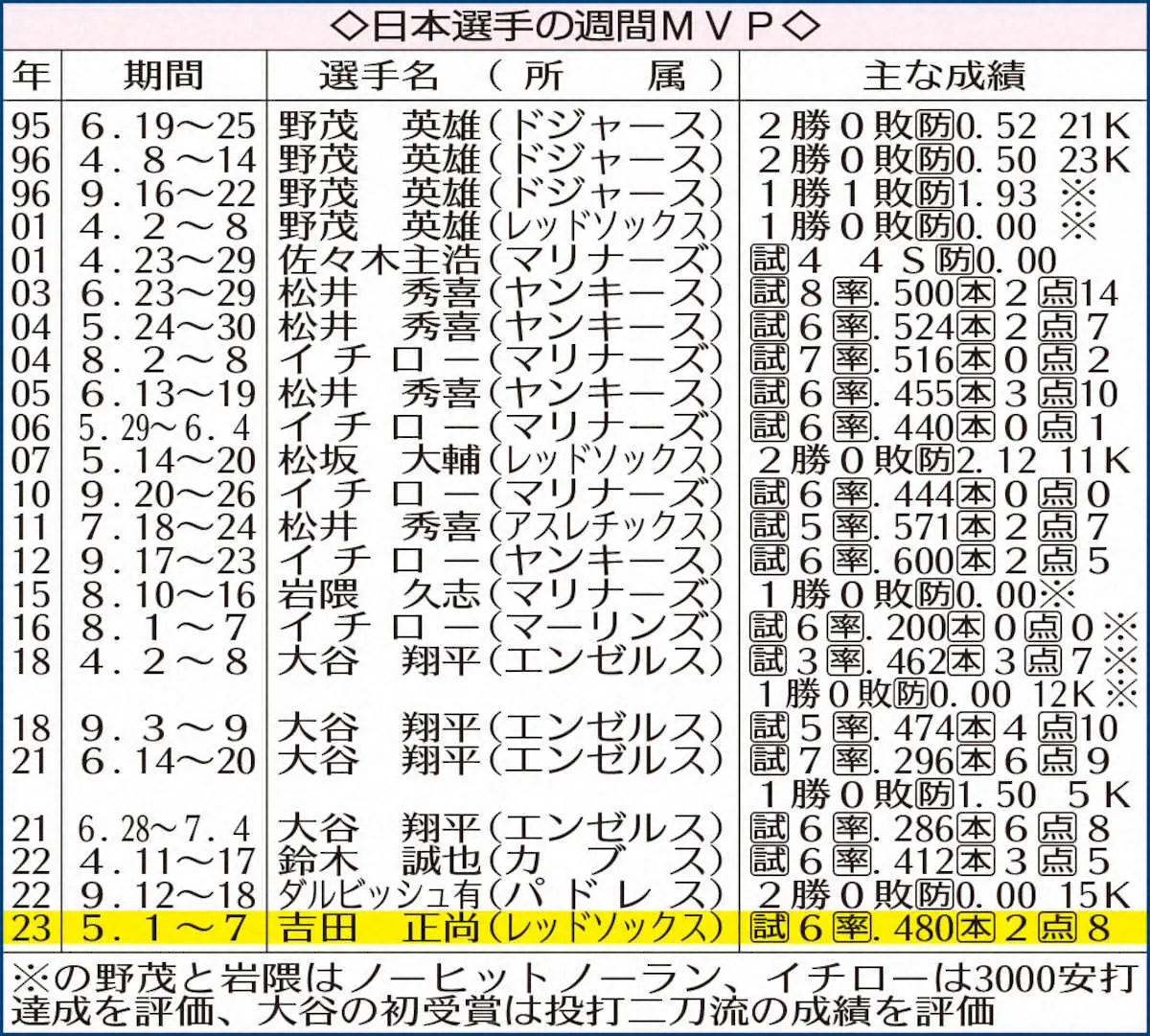 レッドソックス・吉田正尚(AP) Photo by AP レッドソックス・吉田 週間MVPに初選出 日本選手ではダル以来10人目 ギャラリーで見る この記事のフォト 2023年05月10日の画像一覧 もっと見る 2023年05月10日の画像をもっと見る