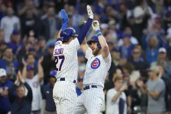 2ランを放ったウィズダムとダイヤモンドを一周後、ハイタッチで喜ぶ鈴木誠也(左、AP) Photo by AP カブス・鈴木誠也が逆転呼ぶ適時二塁打 3回の第2打席で快音→次打者が2ラン ギャラリーで見る この記事のフォト 2023年05月11日の画像一覧 もっと見る 2023年05月11日の画像をもっと見る