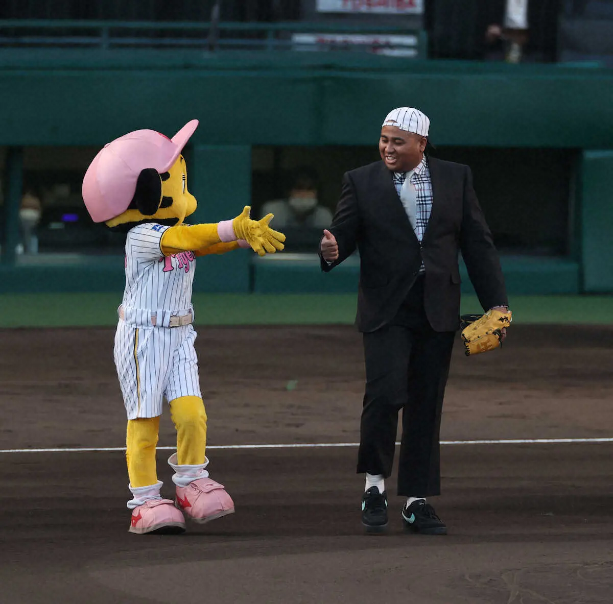 芸人アントニー 阪神戦1stピッチ&ミエセスと記念撮影にどや顔「日本で唯一インスタでつながっている」