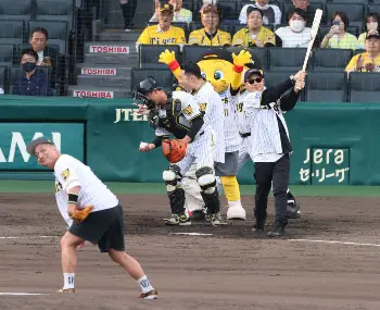 阪神戦のファーストピッチセレモニーに「ベリーグッドマン」が登場 生歌を披露