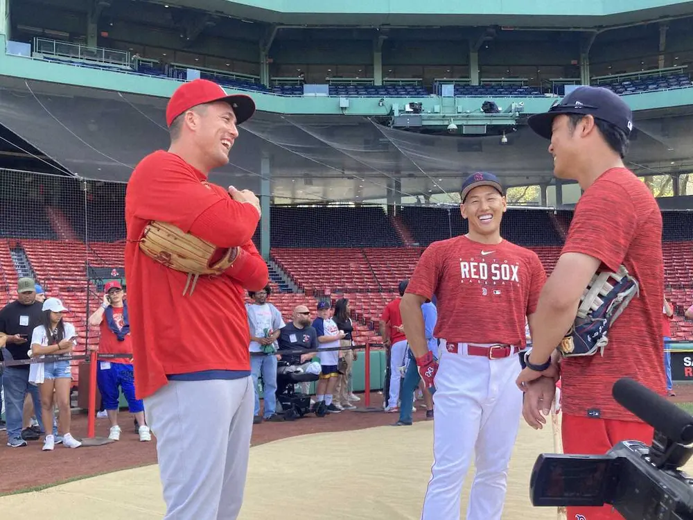 フィールド上で対面したカージナルスのラース・ヌートバー外野手(左)とレッドソックスの吉田正尚外野手(中央) (撮影・杉浦大介通信員) Photo by スポニチ ヌートバーが吉田正尚とWBC優勝以来の再会 「彼はやはり頭がいいね」打撃… ギャラリーで見る この記事のフォト 2023年05月13日の画像一覧 もっと見る 2023年05月13日の画像をもっと見る