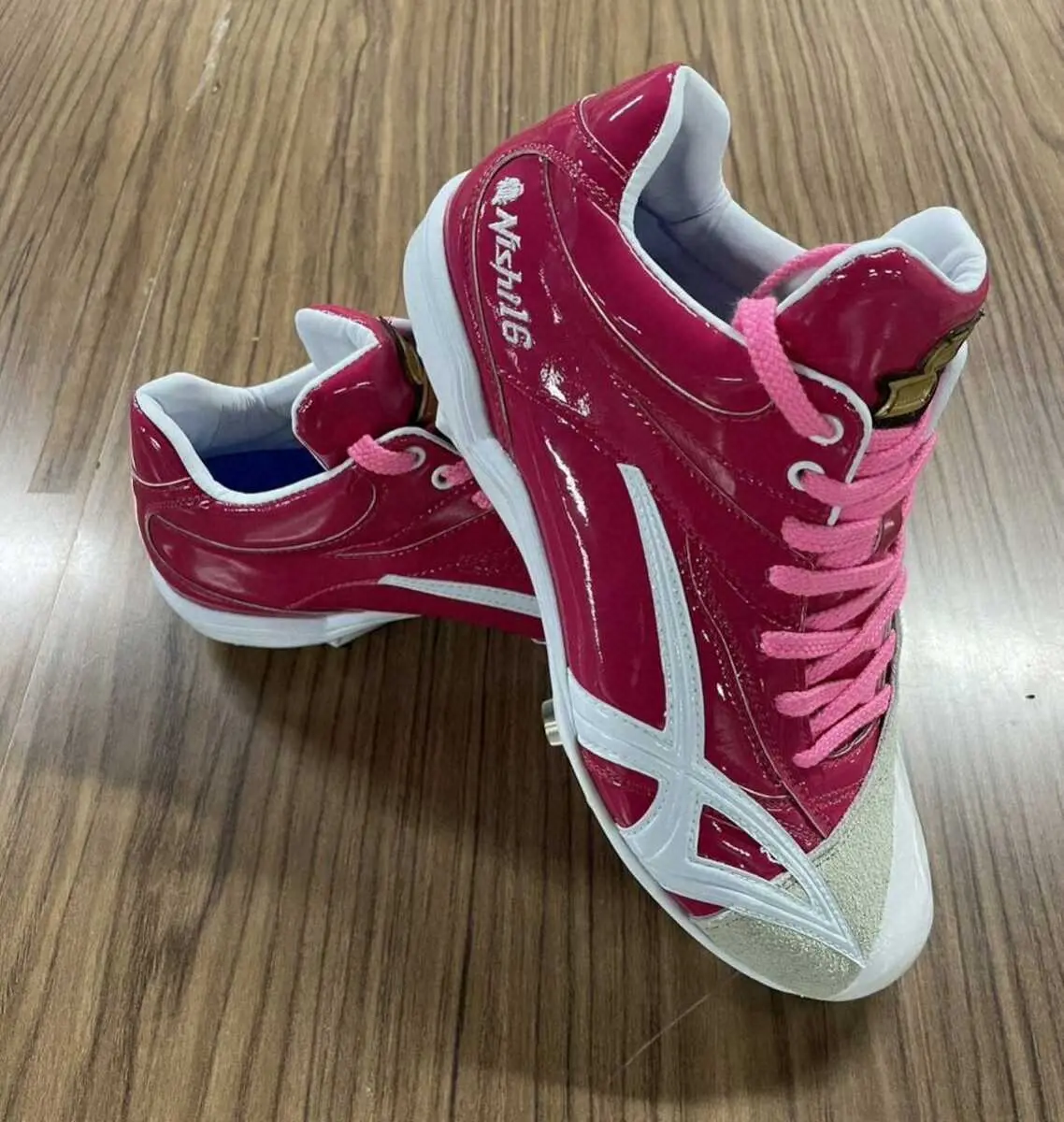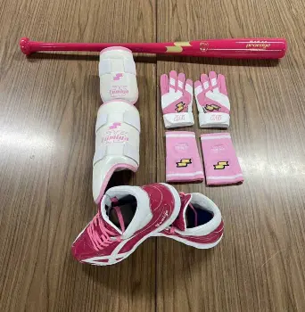 西勇はスパイク、梅野はキャッチャー防具一式と、バット、スパイク、打撃用手袋など、北條はバットやスパイクなどをピンク色でそろえた。