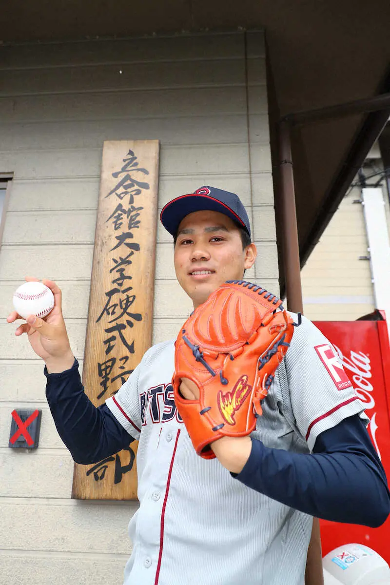立命大では、高校3年間のように順風満帆だったわけではない。3年春のリーグ戦では6試合に救援登板して防御率6・35(5回2/3、4失点)。「ただ速い球を投げることを求めていた。なぜ打たれるのかを考えました」。悩める日々が「間合い」の大切さを教えてくれた。現在は、大きく振りかぶってから、わずかに時間を置くようにタメをつくり、そこから左足を上げて2段モーションで投げ込む。「試行錯誤するうちに自分に合ったタイミングが見つかった。球も速くなりました」。自己最速は151キロ。今春は主戦投手として、3勝を挙げた。