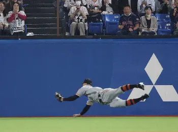 <ヤ・巨>飛んだ!6回、塩見の打球を好捕する梶谷(撮影・沢田 明徳) Photo by スポニチ 巨人・梶谷が途中出場、即スーパープレー! 右中間への大飛球をダイビン… ギャラリーで見る この記事のフォト 2023年05月17日の画像一覧 もっと見る 2023年05月17日の画像をもっと見る