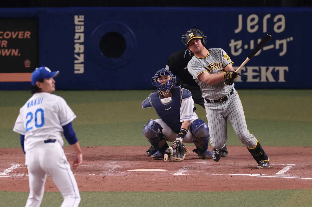 流れる沈黙の時間。とはいえ前日16日の豊橋での試合は14安打9得点の大勝し、前回、涌井と甲子園で相まみえた3日も2回終了時の0―6から猛反撃して最後は木浪のサヨナラ打で劇的勝利を収めた。このまま淡々と進むわけがない――。虎党だけではなく、ノイジーの脳裏にもその思いはあっただろう。果たしてN砲のバットが試合の流れを変えた。4回だ。近本、中野が凡退し、無走者投球継続を許すかと思われた2死。初球の緩いカーブを叩き、左前へ運んで口火を切った。
