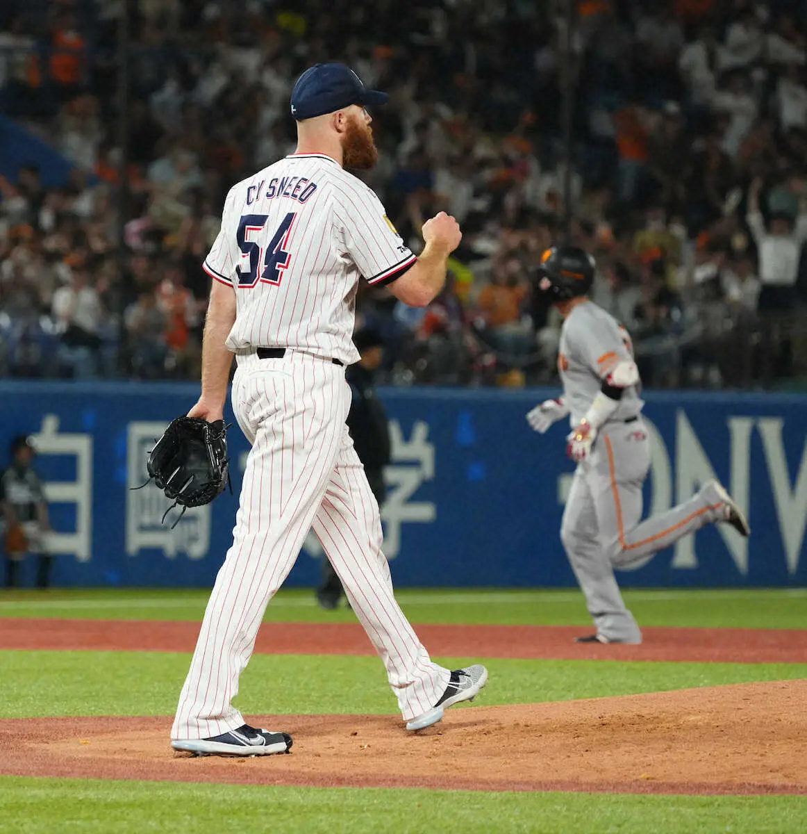 <ヤ・巨>5回、坂本に3ランを打たれるサイスニード(撮影・沢田 明徳)