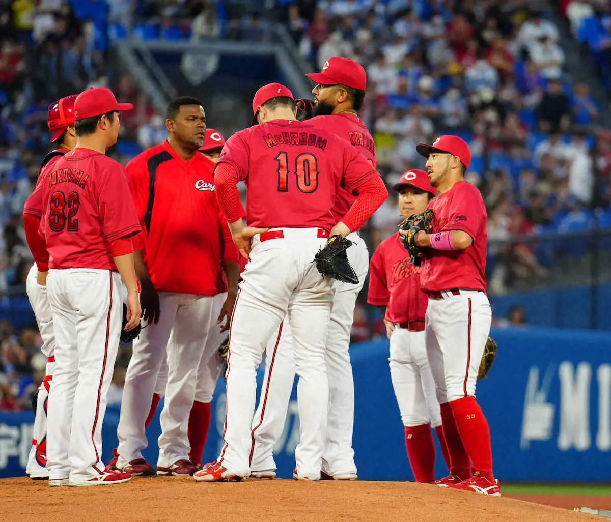 広島は2年ぶりの13失点に加え、いずれも今季ワーストの17被安打、9与四死球の“投壊”で大敗を喫した。先発コルニエルが4回5失点。後を受けた大道、塹江も締まらず、6回1イニングで8点を失った。2連敗で3カードぶりの負け越し。それでも新井監督は投手陣を責めることなく「ブルペンも今までずっと頑張ってくれているし、こういう日もある。逆に切り替えやすい」と前を向いた。先発陣はチーム最多4勝の床田が左肘の炎症で17日に登録抹消となり、大瀬良も次回登板が不透明という窮状。4位・巨人に1ゲーム差に迫られた。