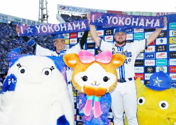 <D・ヤ>タオルを掲げる関根(左)とウェンデルケン(撮影・島崎忠彦)