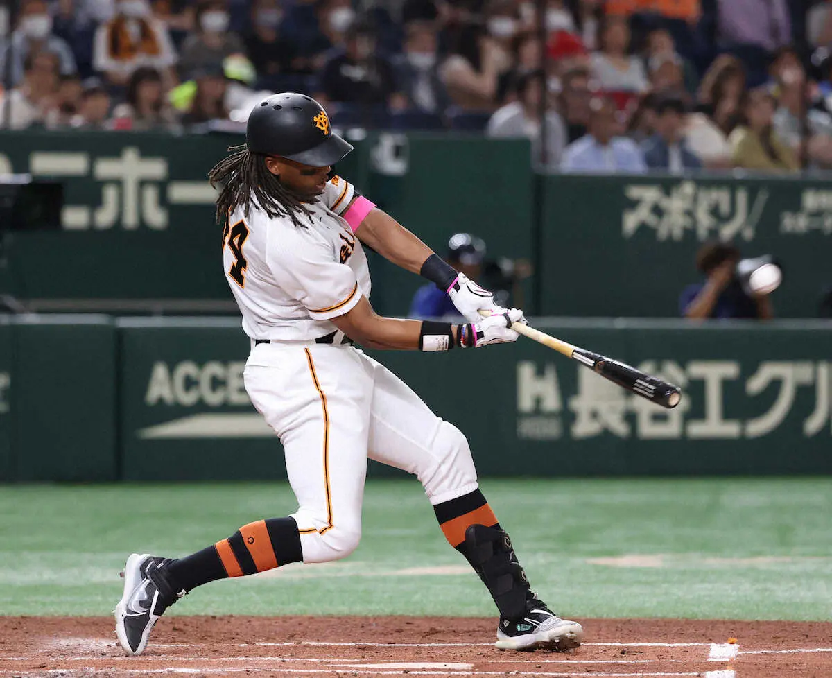 <巨・中>7回、岡本和は2ランを放つ (撮影・西川祐介)